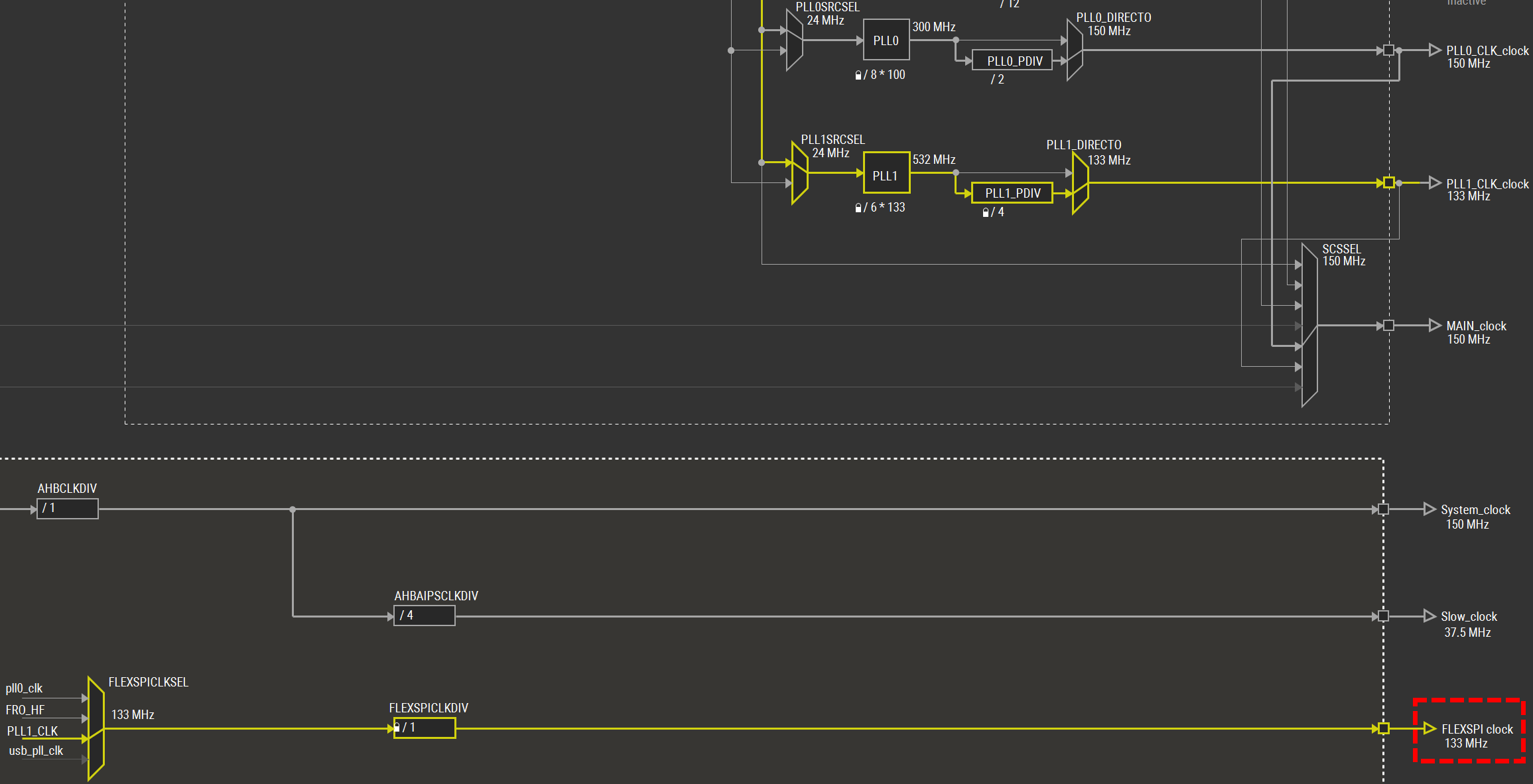 Configuring PLL1 to generate a 133MHz clock for the FlexSPI interface