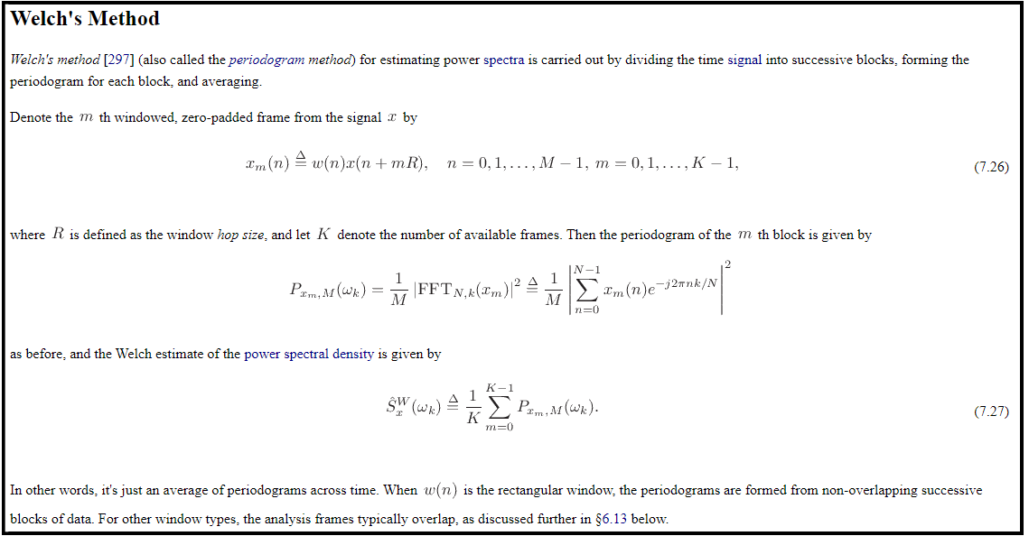 Welch’s Method for computing Power Spectra [Source https://ccrma.stanford.edu/~jos/sasp/Welch_s_Method.html]