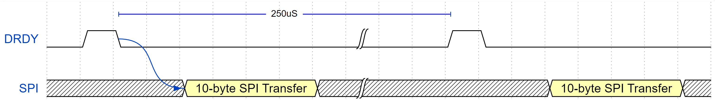 For this application, we need to trigger a 10-byte SPI operation whenever the ADXL355 flags new data is ready.