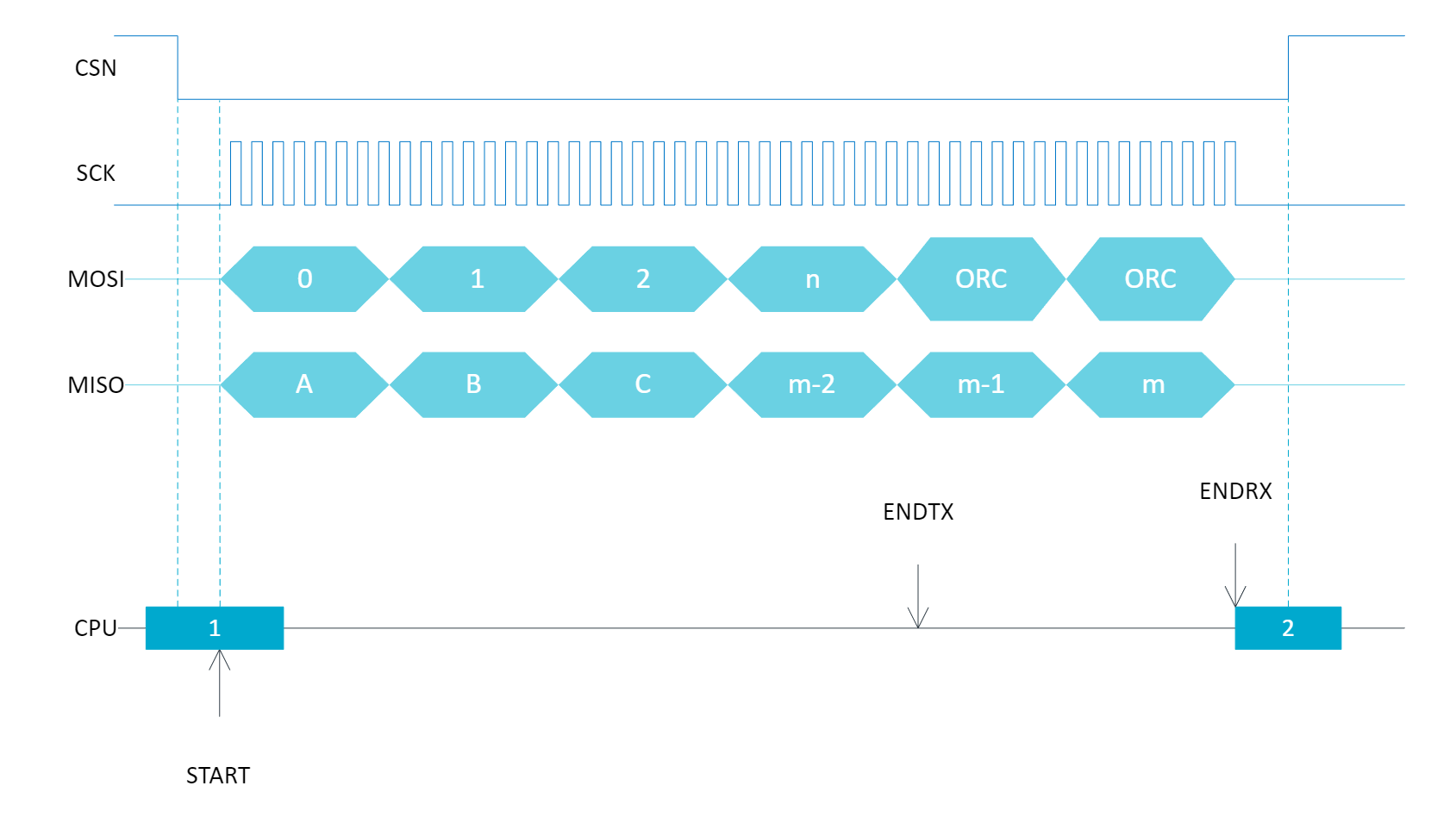 The SPI (called SPIM) and I2C (called TWIM) peripherals in the NRF9160 are simple to use via direct register access. They have been designed to handle the most common access patterns. The SPIM module has “EasyDMA” functionality. EasyDMA enables simple configuration of a single DMA transfer to/from a SPI peripheral. I have found that fewer number lines of code are needed to directly program Nordic peripherals than using a high-level driver API.